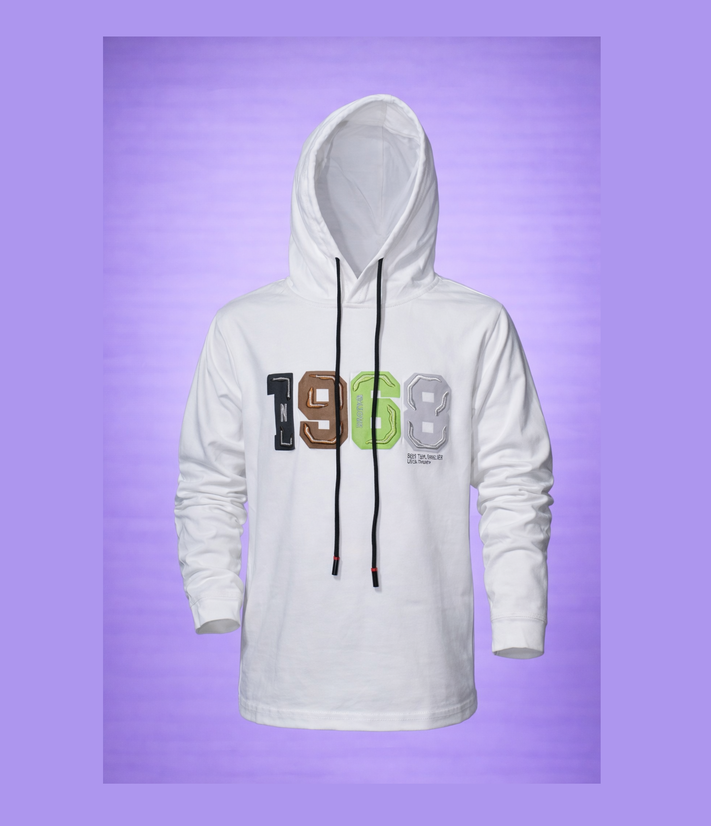 Upgrade your casual wardrobe with this clean and contemporary white hoodie, designed for everyday comfort with a bold statement finish. Featuring eye-catching “1968” raised applique detailing across the chest, this piece blends vintage inspiration with modern street style.