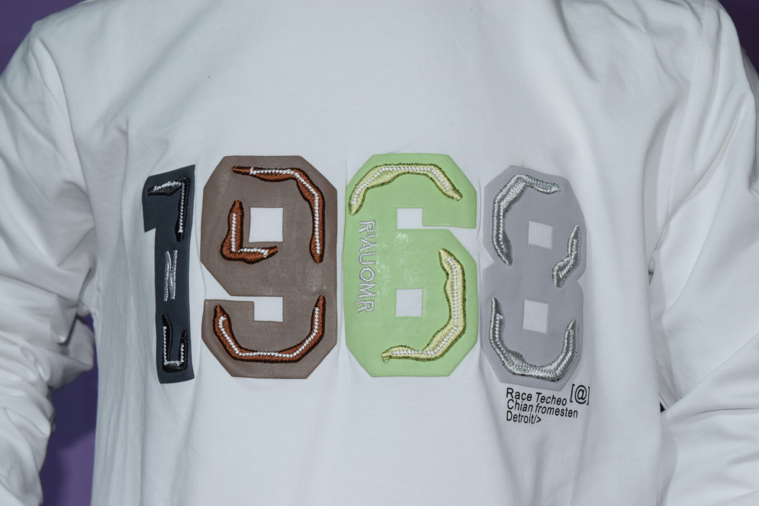 • Bold raised “1968” applique graphic